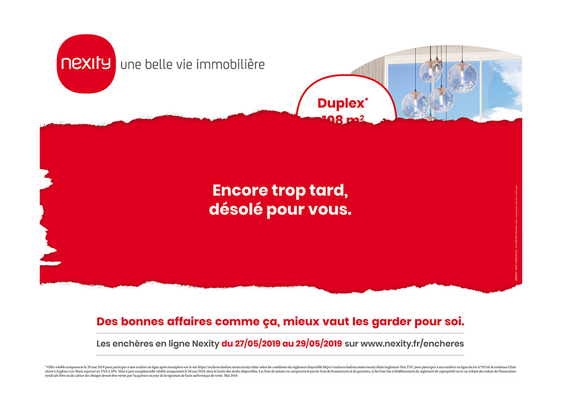 Buying an apartment can be really tricky and the competition really high… So when you find a good deal, you usually want to keep it to yourself…That's why, for Nexity's new auctions campaign we basically hid all the apartments ads for sale…